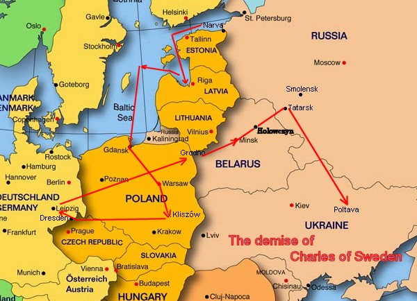 "Sixteenth-Century (1500's A.D.) Russia, with its endless communities of lord and serf, could mobilize almost nothing." (170) These above-mentioned reasons explain why the armies led by King Charles XII of Sweden were able to penetrate deep into the Russian Empire in the years 1708-1709 before their decisive defeat at the Battle of the Poltava in The Ukraine at the hands of the armies led by Peter the Great. "The mass of the Russian population has always been agricultural, and the chief political question that of the ownership of the land. The size of the country has encouraged large estates; its featurelessness, communal rather than individual forms of peasant proprietorship; and its emptiness, a nomadic tendency, for which the landlord's remedy was serfdom. For the Russian is by nature a nomad, a pioneer, a colonizer. 'With his crucifix [round his neck], his axe in his belt, and his boots slung behind his back, he will go to the end of the World' [Rambaud]. Russia is not encumbered, as so many nations are, by a political past. With no visible ruins, no relics of an earlier civilization, and no ancient literature, it has been free to extemporize whatever government seemed to suit it best. The center of the Russian state is the family, and the union of families in the village community: the type of government this favors is a paternal despotism. Hence landlordism and Tsarism - the peasant becoming a serf and the citizen in the hands of tyrants whom he trusts, even when they slay him. Finally, a form of Christianity, learnt at the deathbed of the Roman Empire (i.e. the Eastern Orthodox Christianity of the East Roman or Greek Byzantine Empire, 395-1453 A.D.), and stiffened by centuries of isolation (under the Mongol Golden Horde Empire of 1237-1480 A.D.), ruled everything in the peasant's life, except his nomad conscience (the Cossacks) and his mystical turn of mind." (171) "First, not only the size of Russia, but also its geographical unity, fits it to be the seat of a great empire. It is a huge, flat, triangular plain, with its base on the Ural mountain range, and its apex at the now Polish capital of Warsaw. This shape gives it a special strength in defence: you may attack the apex, but the further east you go, the more the country opens out, and the more formidable your task becomes. The flatness of Russia is the flatness of the great northern plain of Europe... The only eminence in Russia is the Valdai Hills, south of Saint Petersburg (Petrograd, Leningrad); and from these rise three rivers, which flow, after incredibly long and slow journeys, into the Baltic, Black, and Caspian Seas, covering the whole country with a system of water-roads. These three river-valleys were the homes of the three periods of Russian culture, and on them were built the three capitals of the Russian Empire. On the Neva River, flowing north into the Baltic Sea, was built the city of Novgorod... On the Dnieper River, flowing south into the Black Sea, rose the city of Kiev (today the capital of The Ukraine), which became the capital in the tenth century (900's A.D.), and derived its religion and culture from Christian Byzantium (Constantinople, Istanbul), and the dying Roman Empire. On a tributary of the Volga River, which flows east, and then south right across Russia to the Caspian Sea, and in the very middle of the country, lay Moscow, its religious and political center since the fourteenth century (1300's A.D.) - turning its back on Europe, and recalling Russia to its Oriental past." (172)